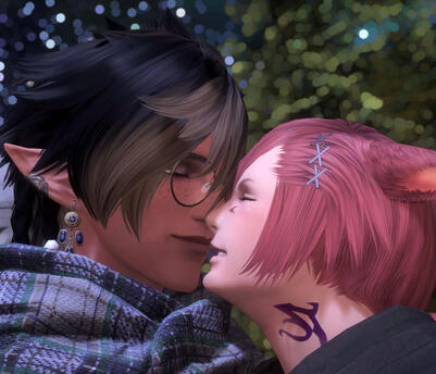 I write a series of fanfics titled Promises Kept that focus on Aedric and G'raha's relationship. I enjoy writing stories that focus on intimacy, smut, and realistic portrayals of love. If you're into nerds in love, mutual pining, and tender smut (with size difference!), boy do I have some fics for you!There's no particular order to read my fics, so just dive right in to whatever suits your fancy! Everything is tagged accordingly.You can read them on AO3 here: